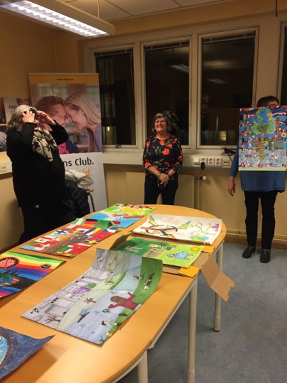 Vinnertegningen som distriktsstyret valgte. Den vises fram av soneleder i sone 6 Sølvi Nordlund.